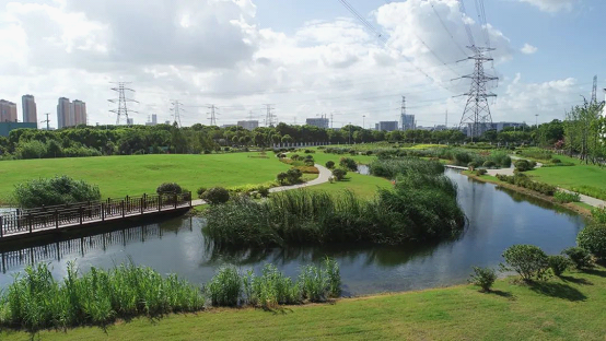 身姿優美的魚兒在清澈的水里游弋,嬌艷的美人蕉亭亭玉立,這是一處藏身于二污廠里的生態濕地,濕地內的水來自污水處理廠的再生水。2021年,二污廠擴容升級,在廠西側進行二期改造,采用表面流人工濕地,尾水經管道輸送至濕地進行尾水提升后出水至吳淞江。濕地內配有蘆葦、澤瀉、睡蓮、黃菖蒲、花菖蒲、香蒲、荷花等水生植物,升級后的城市綠肺人工濕地兼具尾水提升、生態補水、綠地景觀和防洪灌溉功能,日處理能力達15萬立方米,實現污水廠+人工濕地二階跳。