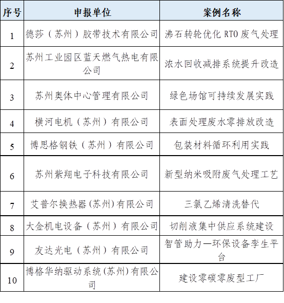 根據(jù)組委會安排,現(xiàn)將2025年蘇州工業(yè)園區(qū)“綠色WE來”減污降碳典型案例評選結果公示如下(排名不分先后):