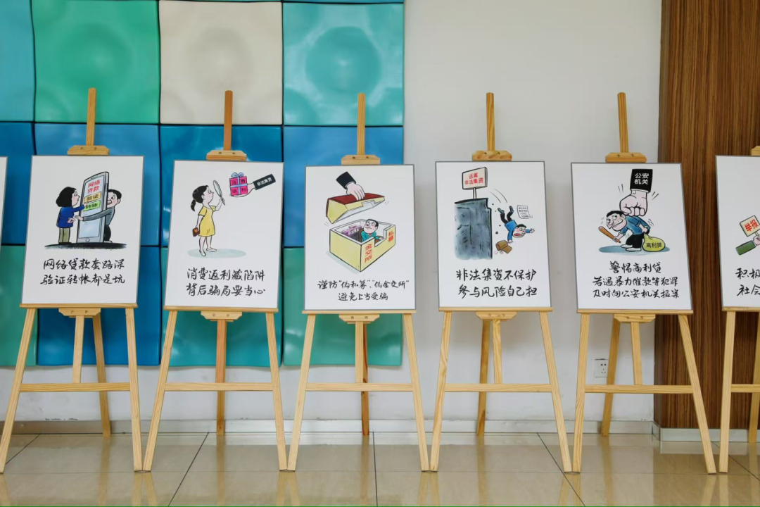 在推進金融惠民服務的過程中,商務區將“防非”宣傳作為重要配套,創新采用“可視化+互動化+場景化”的宣傳模式,讓“防非”知識接地氣、易理解、記得住。金融“防非”漫畫巡展是此次宣傳的亮點。20幅“防非”主題漫畫聚焦當下高發的金融風險場景,每幅漫畫都配有“風險提示語”和“辨別要點”。截至目前,漫畫巡展已隨駐點服務走進6個載體,累計覆蓋超1.2萬人次。