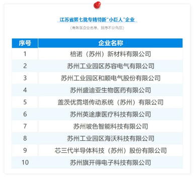 近日江蘇省工業和信息化廳對擬認定的第七批專精特新“小巨人”企業名單完成公示金雞湖商務區10家企業上榜