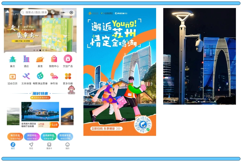 持續(xù)豐富智慧旅游應(yīng)用,堅(jiān)持?jǐn)?shù)字賦能文旅發(fā)展,“惠游園區(qū)”文旅小程序、攜程文旅主題館、數(shù)字金雞湖APP、百度金雞湖一鍵智能游、金雞湖夜光跑道等場(chǎng)景涌現(xiàn),環(huán)金雞湖智慧綜合桿及標(biāo)識(shí)系統(tǒng)項(xiàng)目共1200個(gè)綜合桿掛載照明燈具、視頻監(jiān)控、旅游風(fēng)向標(biāo)、廣播、基站、無(wú)線充電、LCD屏等智能化設(shè)備,實(shí)現(xiàn)“多桿合一、多箱合一、多管合一”。