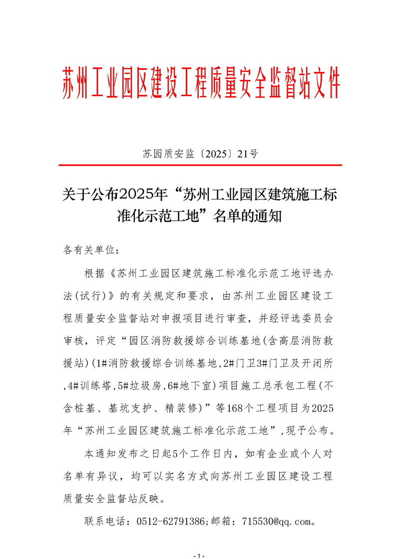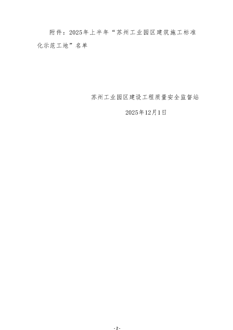 關于公布2025年“蘇州工業(yè)園區(qū)建筑施工標準化示范工地”名單的通知