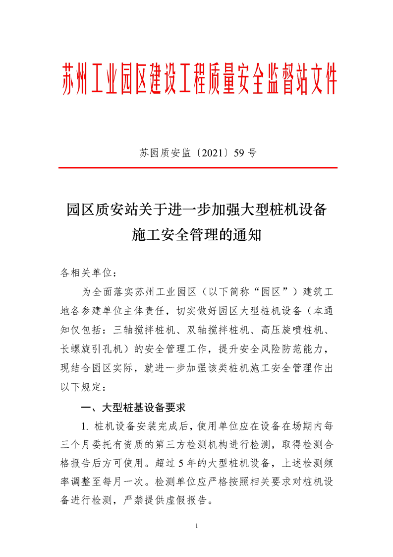 園區(qū)質(zhì)安站關(guān)于進(jìn)一步加強(qiáng)大型樁機(jī)設(shè)備施工安全管理的通知