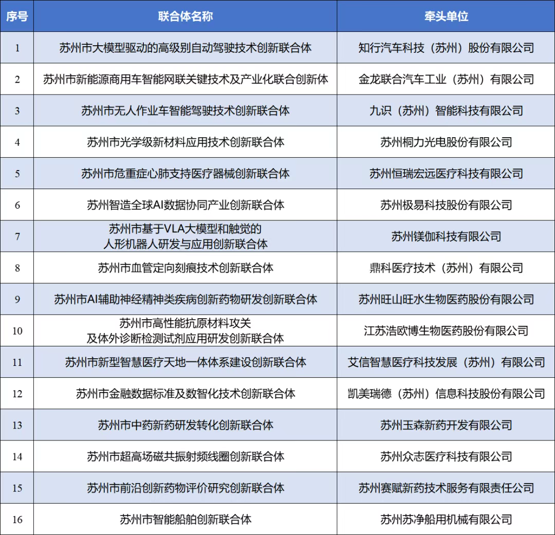 日前,蘇州市科技局公示了2025年度蘇州市創新聯合體擬立項項目名單,蘇州工業園區再添市級創新聯合體23家,其中指令性立項7家,數量居全市第一,指導性立項(即培育)16家。