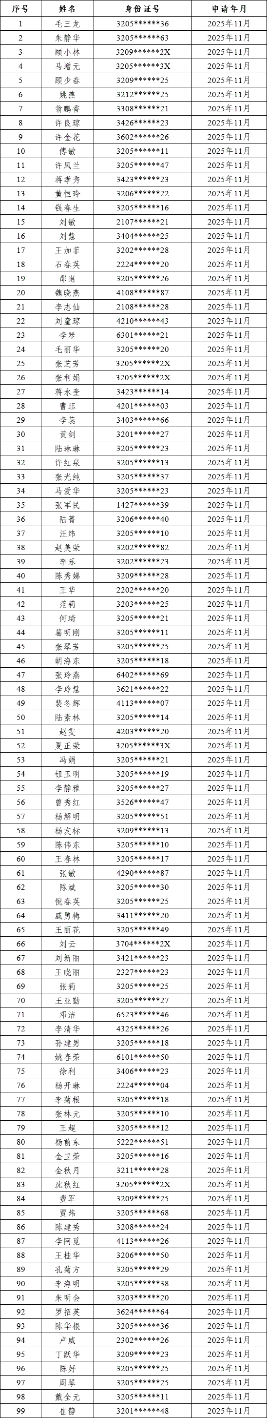 2025年11月靈活就業人員社保補貼新增符合人員公示名單