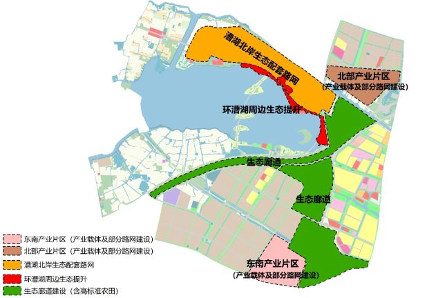 漕湖沿岸生態環境提升及產業升級項目主要建設內容包括生態提升、基礎設施、水系治理、產業載體及商業配套。