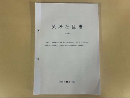 《吳淞社區志》于2022年底啟動編纂,2025年11月完成終審稿。是園區街道社區志文化編纂工程開展以來第2部終審的社區志?!秴卿辽鐓^志》上不設限,下限至2023年,共13章49節16萬字。