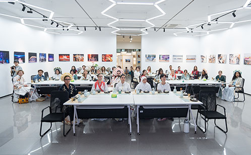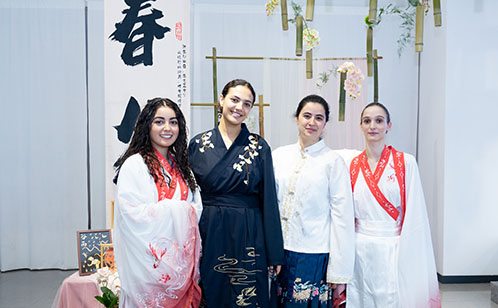 現場,“未來顯影——獨墅湖畔的文化底片”主題展覽拉開序幕。展覽集中呈現了科教創新區歷年文化活動的精彩瞬間,并創新性地以四季色系為脈絡,打造二十四節氣傳統文化展區。春櫻粉、夏荷碧、秋杏金、冬湖藍四個色區對應著不同季節的文化活動與傳統技藝。中外學子們身著漢服漫步其間,在移步換景中感受獨墅湖四季流轉的文化魅力,體驗傳統文化與現代科教融合的獨特韻味。