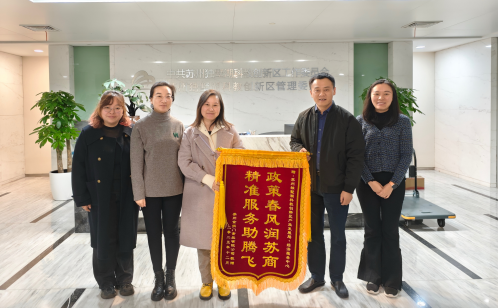 12月10日,蘇州金拱門食品有限公司負責人專程來到蘇州獨墅湖科教創新區管委會,送來“政策春風潤蘇商 精準服務助騰飛”的錦旗,表達對蘇州獨墅湖科教創新區精準高效服務、助力企業發展的衷心感謝。