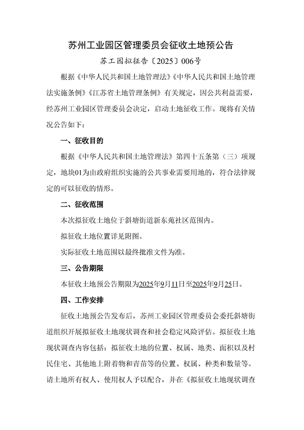 蘇工園擬征告〔2025〕006號--征收土地預公告