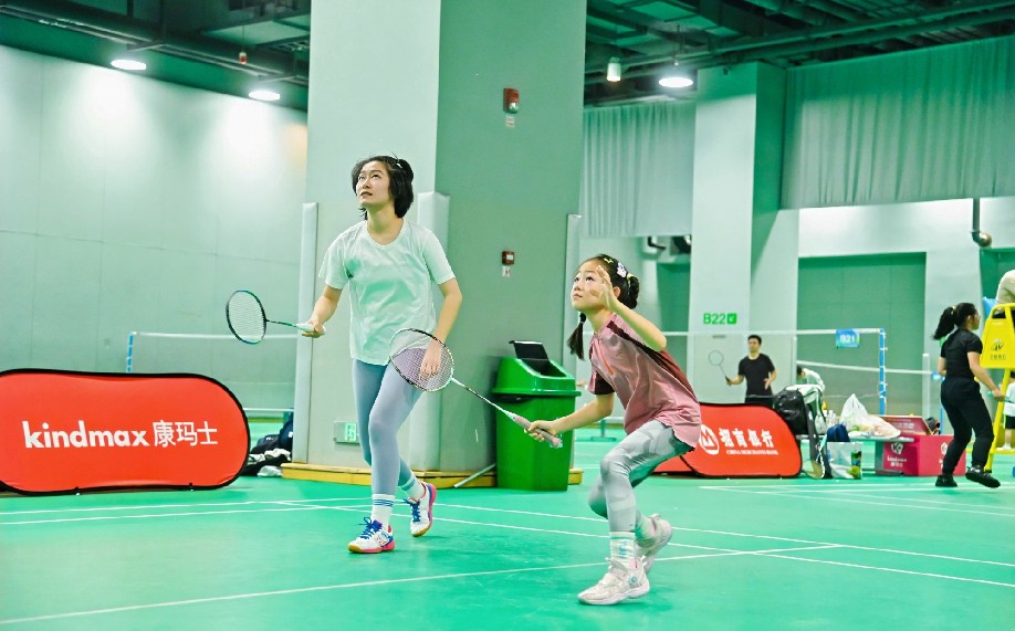 親子賽場上則兼具熱血競技的酣暢和親子互動的溫情。一大一小的默契配合,讓羽毛球成為連接親情與友情的紐帶。賽場旁的親子手工區更是人氣爆棚,一件件由家長孩子共同制作的羽毛球主題掛件,讓歡聲笑語傳遍競技賽場。