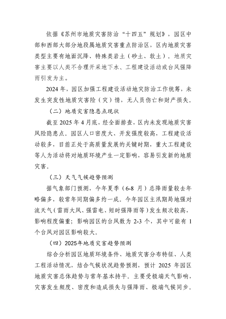 蘇州工業園區規劃建設委員會關于印發《蘇州工業園區2025年度地質災害防治方案》的通知