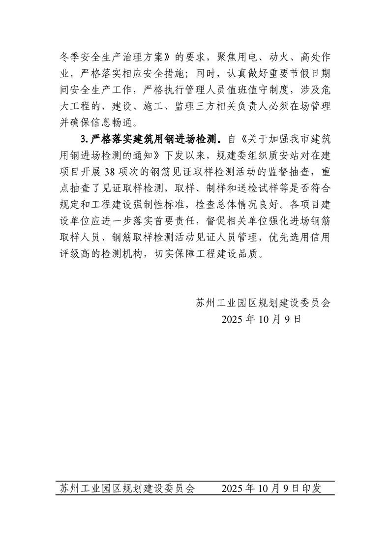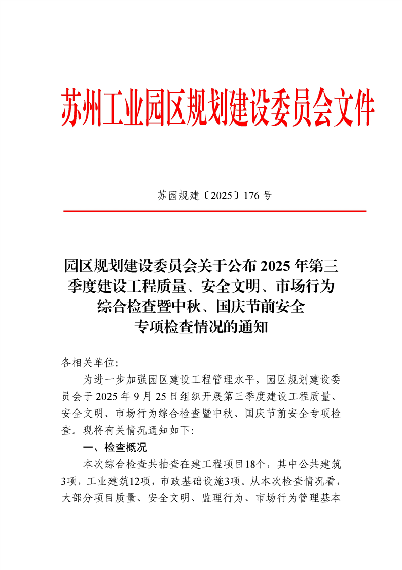 園區(qū)規(guī)劃建設(shè)委員會(huì)關(guān)于公布2025年第三季度建設(shè)工程質(zhì)量、安全文明、市場行為綜合檢查暨中秋、國慶節(jié)前安全專項(xiàng)檢查情況的通知