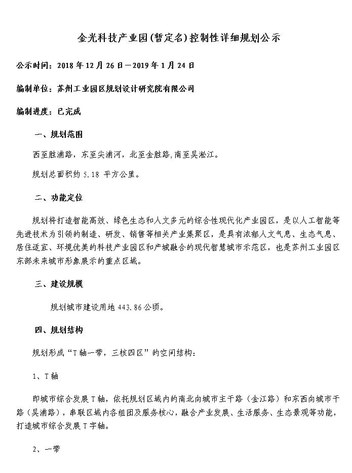 金光科技產業園(暫定名)控制性詳細規劃公示(一)