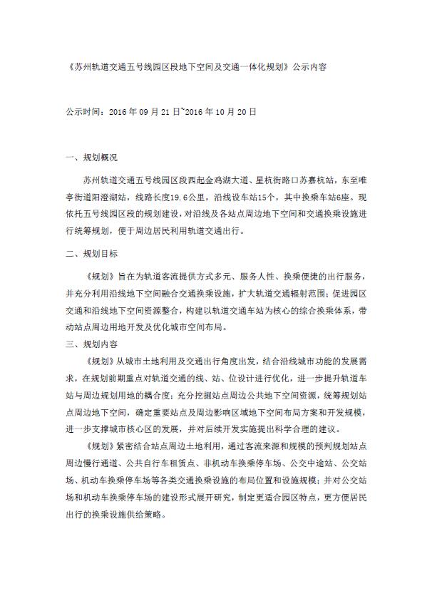 蘇州軌道交通5號線園區(qū)段地下空間及交通一體化規(guī)劃