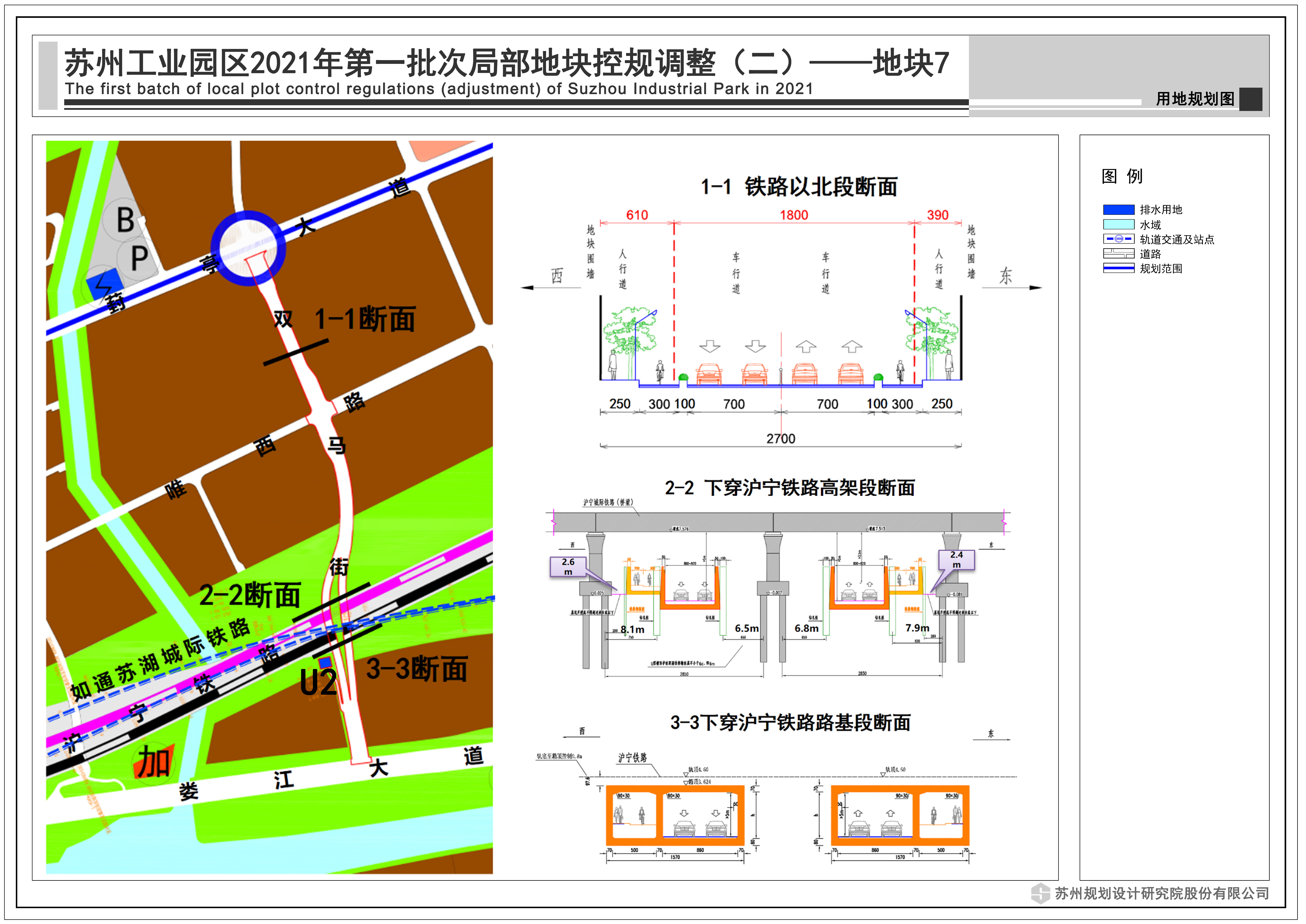 規劃如通蘇湖城際鐵路工程橫跨雙馬街,雙馬街南段道路拓寬工程需在鐵路工程實施前先行進行實施。為解決現狀南段交通問題,雙馬街(葑亭大道-婁江大道段)規劃由雙向兩車道拓寬為雙向四車道,并以雙四車道下穿鐵路段,滬寧城際鐵路以南、雙馬街以西增設雨水泵房。