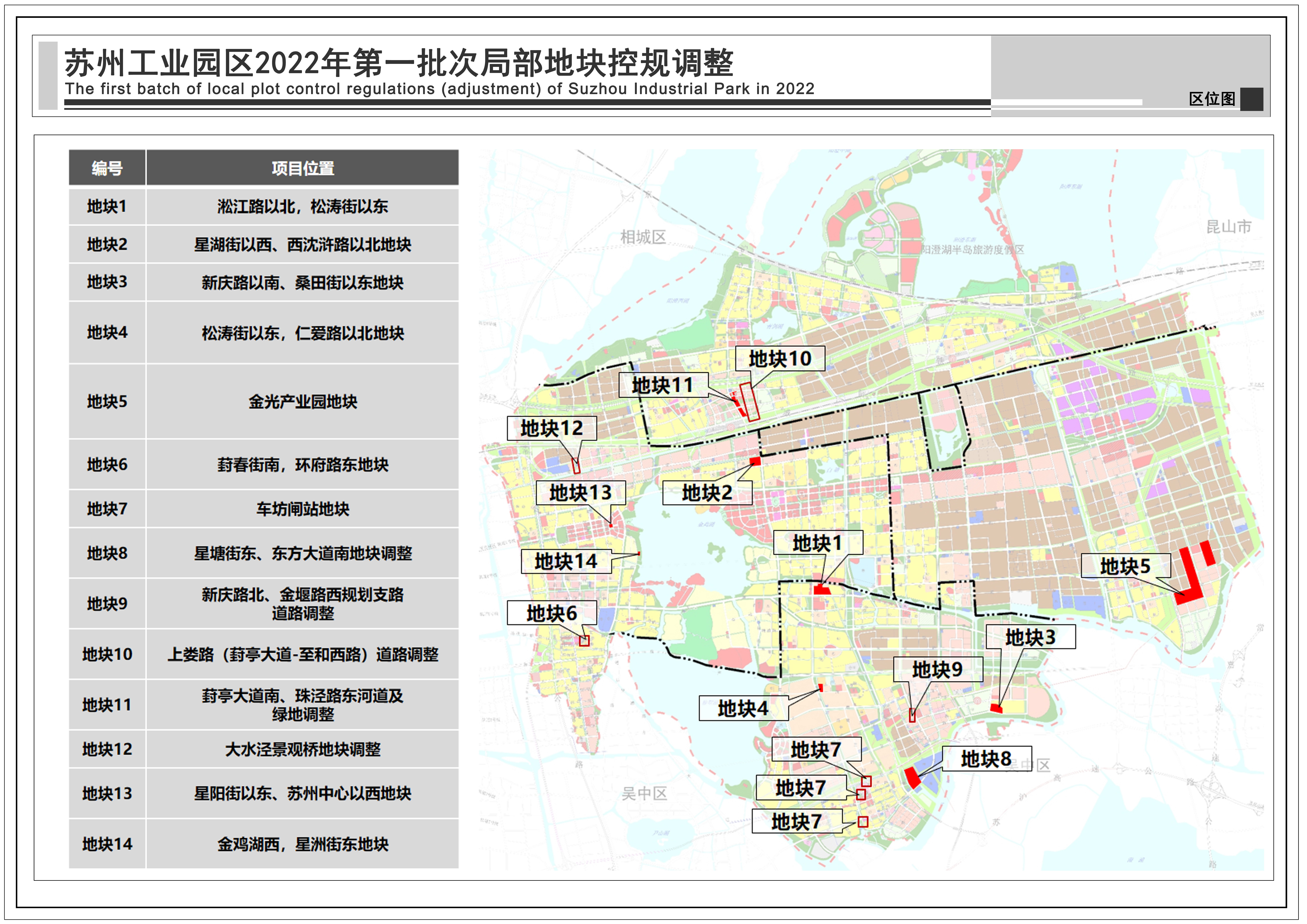 蘇州工業(yè)園區(qū)2022年第一批次局部地塊控規(guī)調(diào)整:共包括14個(gè)地塊,總用地面積1.08平方公里,詳見附圖區(qū)位圖。