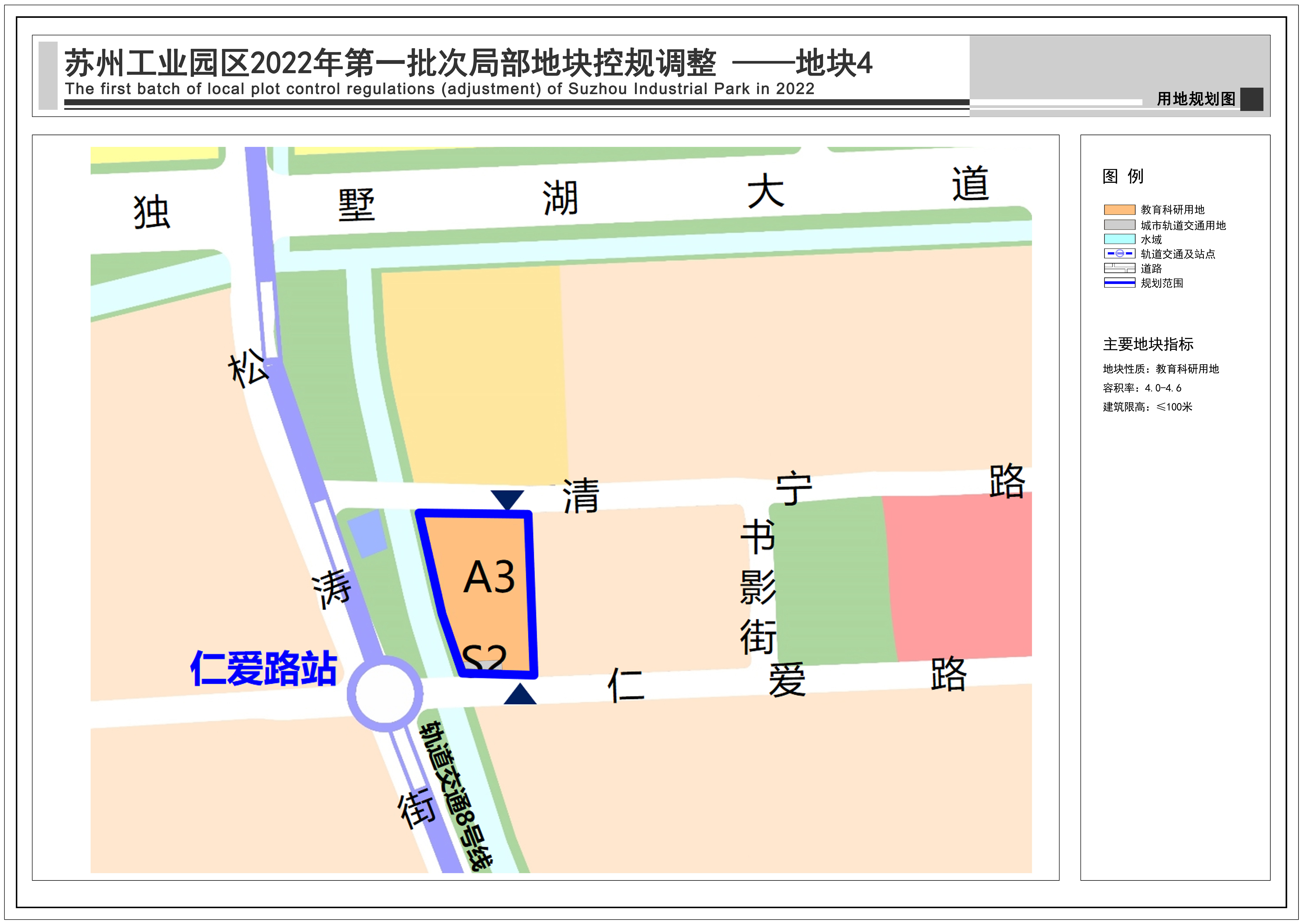 為適應(yīng)片區(qū)發(fā)展需求,地塊性質(zhì)由教育科研用地調(diào)整為教育科研用地與城市軌道交通用地,并明確地塊指標(biāo)。