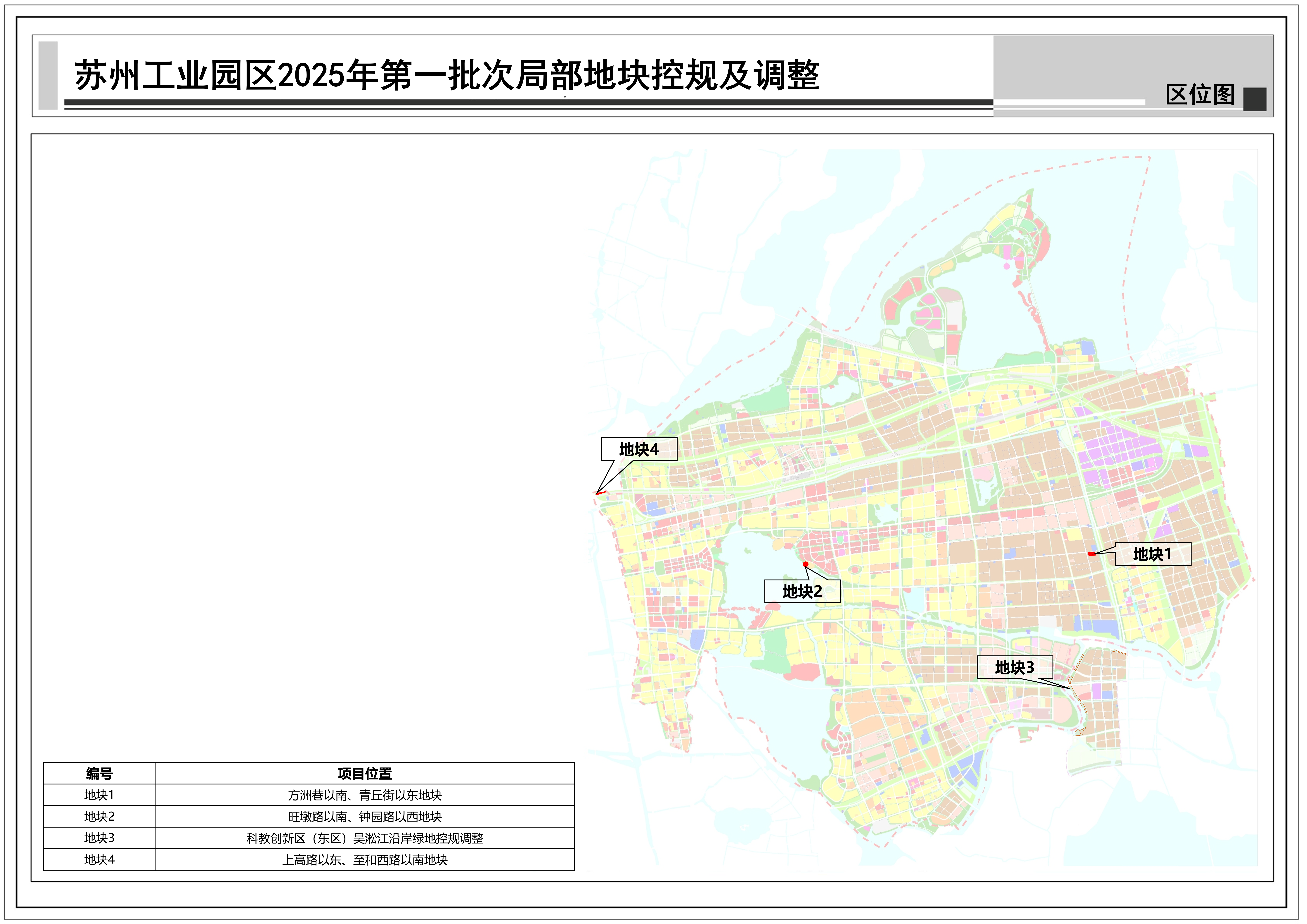 蘇州工業園區2025年第一批次局部地塊控規及調整:共包括4個地塊,總用地面積約0.20平方公里,詳見附圖區位圖。