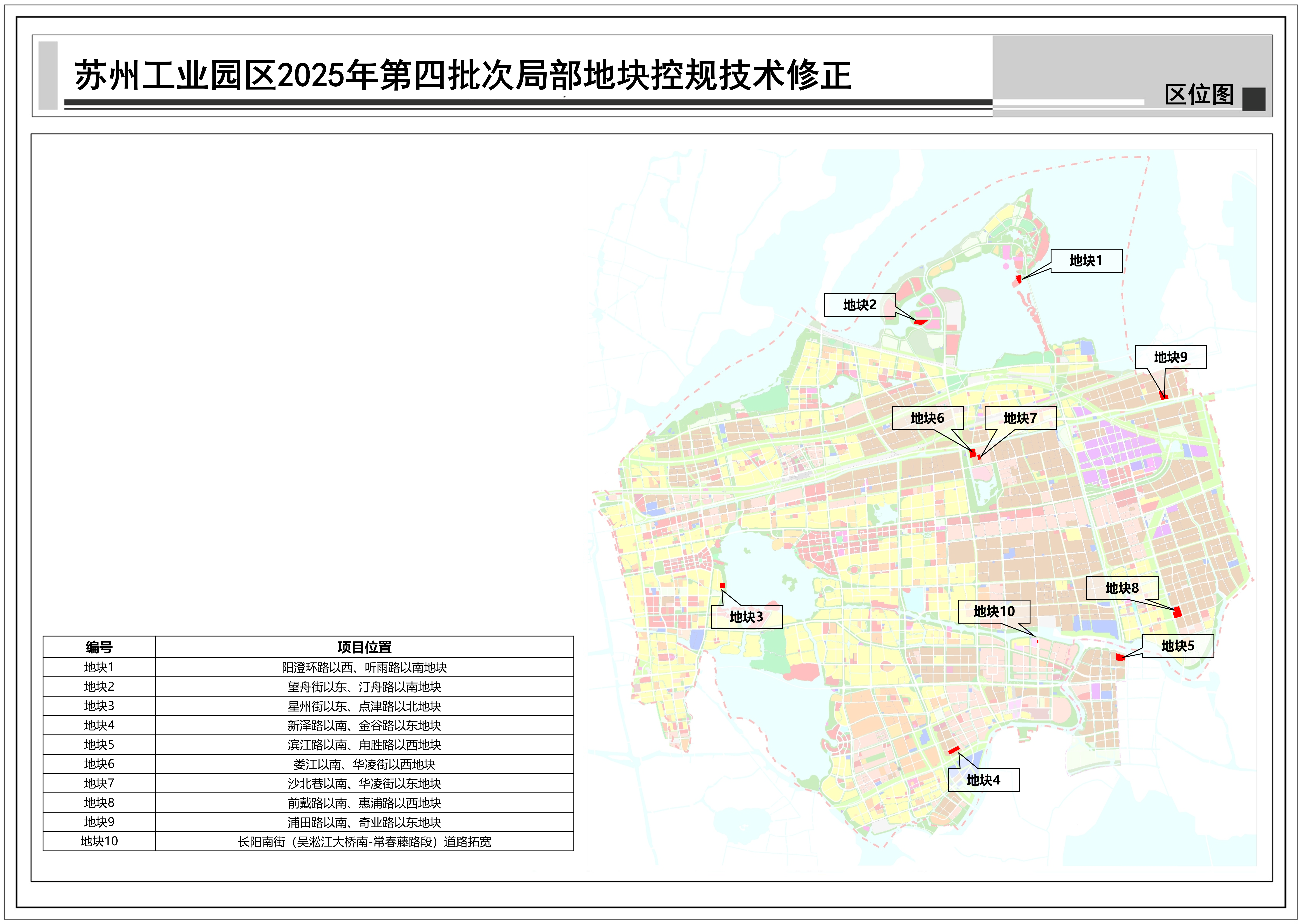 蘇州工業(yè)園區(qū)2025年第四批次局部地塊控規(guī)技術(shù)修正:共包括10個地塊,總用地面積約0.39平方公里,詳見附圖區(qū)位圖。