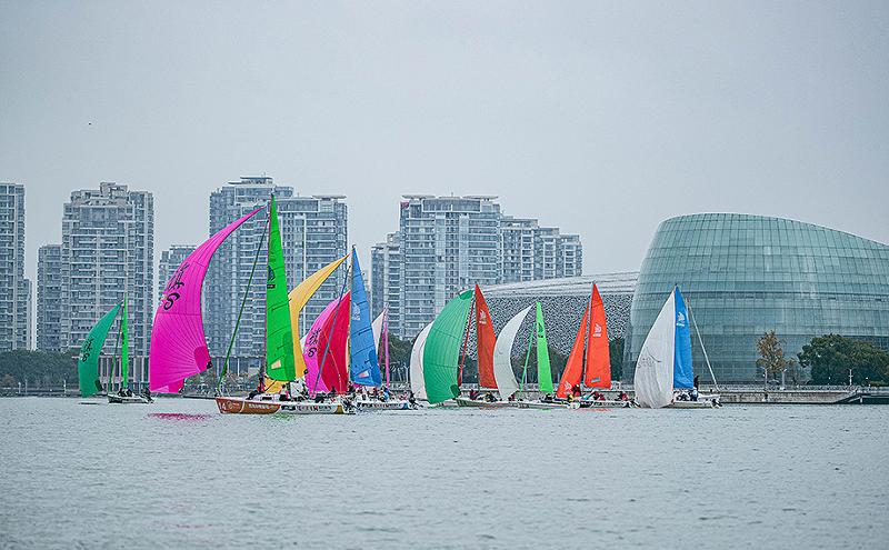 紹介によると、今年の都市間內湖カップ金鶏湖ヨットレースは選手及び観戦者に真新しい體験をもたらすため、グレートをアップさせ、飛虎7.5という新たな船型を導入した。競技種目別によって、フィールド試合、島巡りロングコース試合及び夜間航行試合が設けられ、全方位なヨットレース體験を展示する。また、青少年グループ試合は獨墅湖月亮灣で行われ、園區水上スポーツの発展レイアウト図をさらに拡大する。