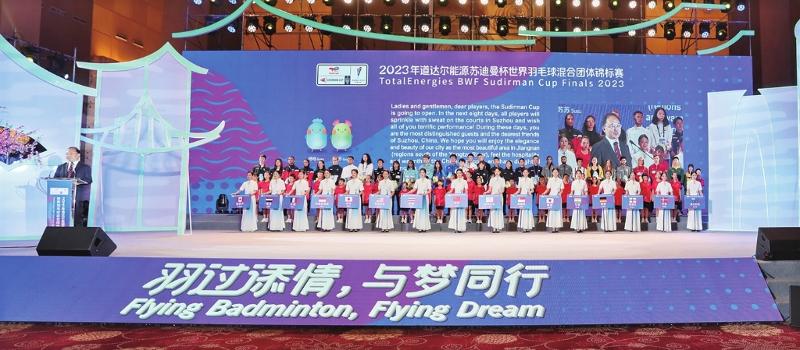 5月12日の夜、2023年スディルマンカップ世界バドミントン男女混合対抗戦の開會式蘇州で開催された。世界バドミントン連合會主席のPoul-Erik Hoyer氏は挨拶をした。江蘇省委員會常務委員、蘇州市委員會書記の曹路寶氏は開會式に出席した。中國バドミントン協會主席の張軍氏、江蘇省體育局局長の陳少軍氏、蘇州市委員會副書記、市長の呉慶文氏は挨拶を行った。