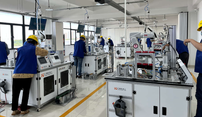 匯博ロボットグループは教育アップグレードを継続的に支援しており、390萬元の資金を投入し、203.16萬元相當の産業用ロボット実習設備を寄贈し、蘇州百年職業學院と「工業インターネット産業學院」を共同建設し、実習生産基地を精心に整備した。