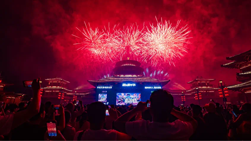 華誼兄弟映畫世界では音楽フェスティバルが開催され、観客を熱狂の渦に巻き込んだ。さらに、5日間連続でテーマカラーが変わる花火ショーが夜空を彩り、陽(yáng)澄湖半島を幻想的な光で包み込んでいる。