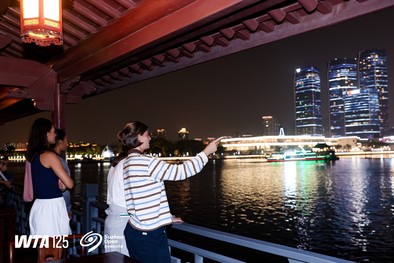 2025年9月27日、WTA125蘇州テニスオープンが開幕した。試合終了後の午後7時、世界各國から參加した選手たちは金鶏湖にある月光埠頭に到著し、遊覧船に乗り込んで昆曲の蕓術(shù)を鑑賞し、音楽噴水を楽しんだ。