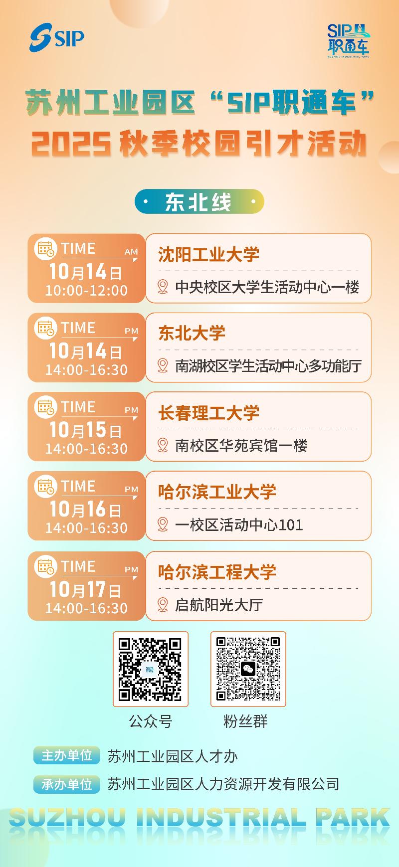 10月14日から18日にかけて、新建元圓才は、園區內の優良有名企業27社と連攜し、「蘇州工業園區2025年秋季キャンパス人材募集専任ライン」の第一弾となる「東北ルート」を開始する。このツアーは瀋陽工業大學、東北大學、長春理工大學、ハルビン理工大學、ハルビン工程大學を訪れ、人材募集の旅をスタートする。