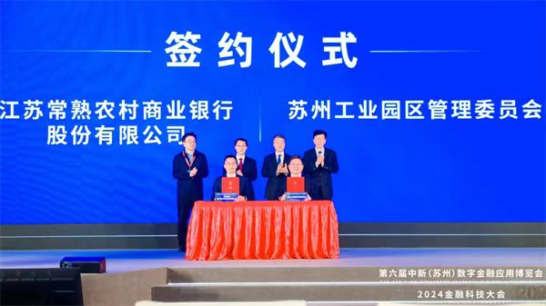 開幕式現(xiàn)場,蘇州工業(yè)園區(qū)管理委員會分別與中國金融電子化集團(tuán)有限公司、安永(中國)企業(yè)咨詢有限公司、東吳人壽保險(xiǎn)股份有限公司、江蘇常熟農(nóng)村商業(yè)銀行股份有限公司進(jìn)行戰(zhàn)略合作簽約,常熟農(nóng)商銀行科創(chuàng)金融中心正式揭牌,多方資源匯聚,多條線合作持續(xù)加強(qiáng)。