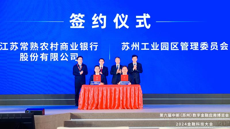 開幕式現(xiàn)場,蘇州工業(yè)園區(qū)管理委員會分別與中國金融電子化集團有限公司、安永(中國)企業(yè)咨詢有限公司、東吳人壽保險股份有限公司、江蘇常熟農(nóng)村商業(yè)銀行股份有限公司進行戰(zhàn)略合作簽約,常熟農(nóng)商銀行科創(chuàng)金融中心正式揭牌,多方資源匯聚,多條線合作持續(xù)加強。
