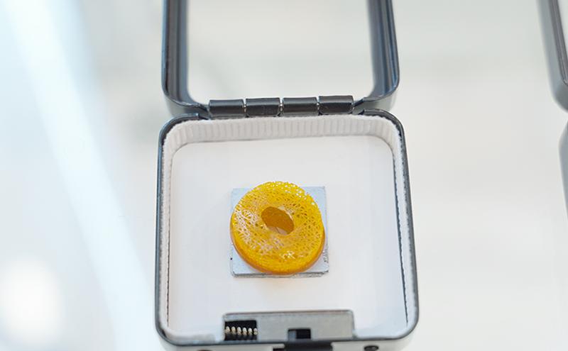 展臺(tái)中,一塊小小的陶瓷超材料模型玲瓏剔透,而其內(nèi)部則是肉眼無法觀察的蜂窩狀結(jié)構(gòu)。“在微納應(yīng)用下,我們可以模擬展現(xiàn)一些新材料的結(jié)構(gòu)特性,從而助力新材料的研發(fā)。目前,公司與多家客戶達(dá)成了合作,可以輔助實(shí)現(xiàn)一些全新課題的研發(fā)。譬如這款陶瓷超材料的結(jié)構(gòu)打印,就為不同結(jié)構(gòu)的新材料研發(fā)提供了新的可能性。”周禮俊說。