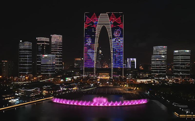 與“蘇州之眼”隔湖相望,金雞湖音樂(lè)噴泉作為蘇州旅游的傳統(tǒng)“打卡”項(xiàng)目,同樣讓人流連忘返。