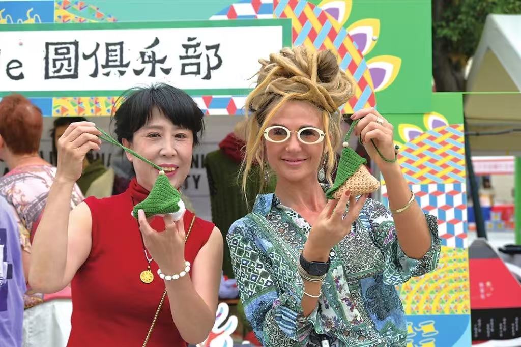昨日,園區金雞湖月光碼頭,絨線編織的“絨粽”倍受中外游客青睞。