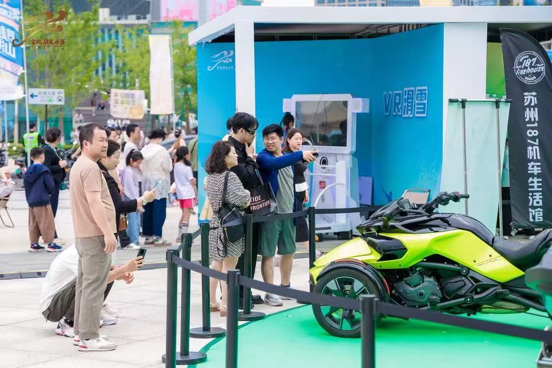 AI繪龍舟,科技龍舟開啟體育經濟新航線。現場設置“科技龍舟體驗展區”,由“體育+科技”“汽車+科技”“智慧+龍舟”“龍舟+零碳”四個板塊組成,不僅有小鵬匯天旅航者X2雙人版智能電動飛行汽車在賽事現場進行蘇州首秀(靜態展示),還可以進行單車發電挑戰、腦機意念黑科技、虛擬VR賽龍舟和滑雪、AI下棋機器人博弈等科技運動打卡項目。同時設置零碳計劃展區,包括物歸“緣”主舊物盲盒交換、綠色回收站等活動,開啟碳中和龍舟2.0版本。今年還以“AI龍舟”為主題,運用AI技術圍繞賽事展開創作,每一幅作品都是AI對龍舟文化的獨特解讀,充滿了創意與想象,獲選作品在賽事現場公開展出。