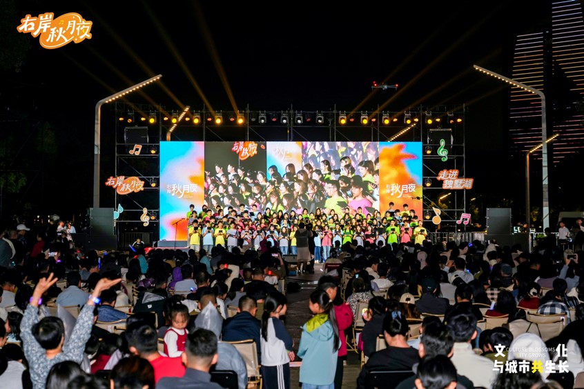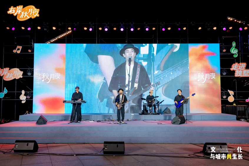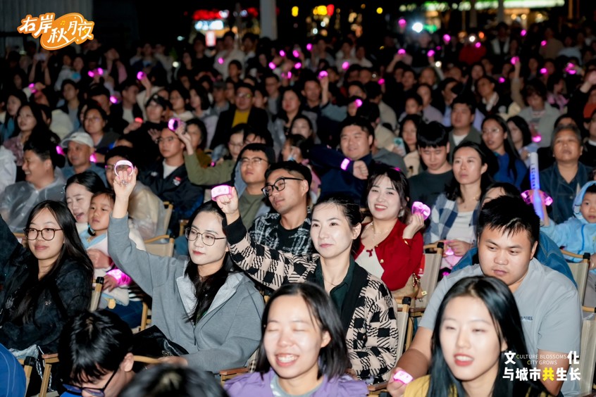 當(dāng)晚的“右岸秋月夜”歌單,滿是秋的詩意與青春的朝氣,裹挾著蓬勃熱意感染全場。粵語經(jīng)典《紅日》一響,瞬間點(diǎn)燃現(xiàn)場熱情;《戀愛ing》《小情歌》等曲目則以青澀旋律喚起共鳴。流行樂隊(duì)、實(shí)力唱將、素人歌手輪番登場,帶著對音樂的熱愛為演出注入鮮活能量。一首首經(jīng)典曲目引發(fā)觀眾頻頻揮手合唱,手中的手環(huán)燈光閃爍交織,宛如一片璀璨星海,將獨(dú)墅湖的秋夜點(diǎn)綴得格外浪漫。