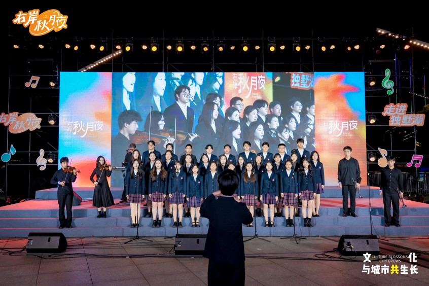 獨(dú)墅湖科教創(chuàng)新區(qū)的校園力量更是成為當(dāng)晚的亮眼風(fēng)景。西交利物浦大學(xué)藝術(shù)協(xié)會合唱團(tuán)、中國人民大學(xué)蘇州校區(qū)合唱團(tuán)以專業(yè)合唱藝術(shù)為橋梁,連接不同文化背景的聽眾,不僅展現(xiàn)了科創(chuàng)區(qū)學(xué)子的青春風(fēng)貌,更成為校園文化與城市活動(dòng)深度融合的鮮活注腳,為區(qū)域文化活力持續(xù)加碼。