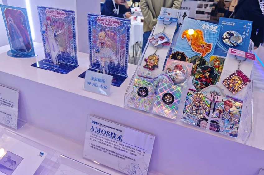 如何讓平平無(wú)奇的卡牌視覺上“立”起來(lái)?怎樣讓二維“吧唧”呈現(xiàn)發(fā)絲飄逸、絲帶飛揚(yáng)的三維質(zhì)感?蘇大維格的光致精印技術(shù),讓這些都成為現(xiàn)實(shí)。