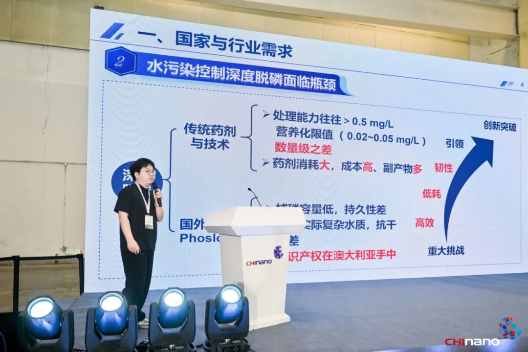 蘇州拓?fù)浞肿涌萍加邢薰狙邪l(fā)經(jīng)理張濤,介紹了《基于納?互鎖捕磷劑的新型材料、裝備與技術(shù)保障體系的建立》。該公司科研團(tuán)隊(duì)經(jīng)過對(duì)金屬中心的對(duì)離子不斷地調(diào)控,發(fā)展了以碳酸根為對(duì)離子的新型吸附活性位點(diǎn),并利用結(jié)構(gòu)相似性提高磷吸附自發(fā)性、交換配位可逆性和pH適用范圍,降低磷吸附與脫附的活化能壘,拓展了磷吸附劑的實(shí)用韌性,并突破了傳統(tǒng)認(rèn)知。