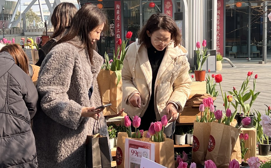 市民李小姐從餐廳出來(lái)就直奔花展,她說(shuō):“剛剛經(jīng)過(guò)時(shí)就注意到‘上新’了年宵花展,紫的神秘,紅的熱烈,黃的燦爛,不僅為街區(qū)增添了活力,也讓春節(jié)的氛圍更濃郁了!現(xiàn)場(chǎng)還能用積分兌換限定郁金香,既幸運(yùn)又特別喜慶!”