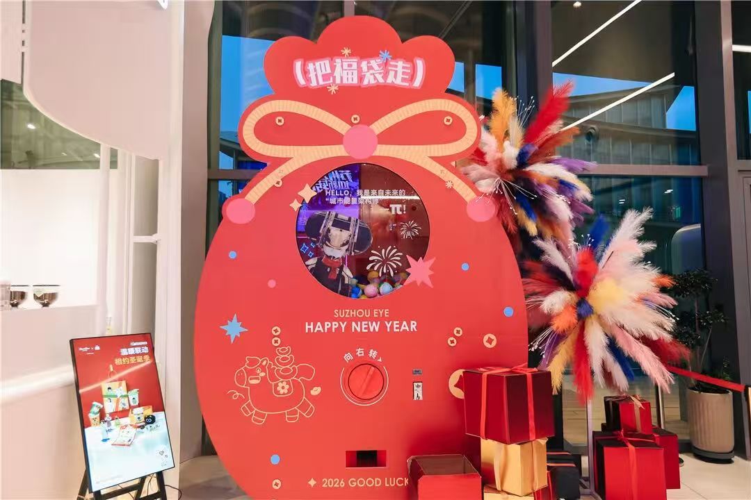 潮趣當然不僅于此?;顒悠陂g,“蘇州之眼”摩天輪設置八大主題裝置,市民游客不僅可以打開解鎖專屬新年運勢,還可同步領取文創禮品;每天整點,現場將隨機開展互動問答,分時段派發各類文創好禮;全新升級的“馬上轉運”扭蛋機2.0也將同步開放,讓驚喜、好運雙重升級。