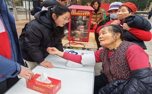 便民服務專區內,磨刀、縫補等貼心服務切實解決了居民的日常難題。磨刀師傅手藝嫻熟,砂輪飛速轉動,一把把鈍舊的菜刀、剪刀在打磨下重煥鋒利;縫紉師傅穿針引線,細致地為居民縫補衣物、修改褲腳,用巧手彌補衣物瑕疵,贏得居民連連稱贊。除此之外,常熟銀行工作人員搭建起服務攤位,熱氣騰騰的爆米花香氣四溢,旁邊的糖葫蘆攤子更是點睛之筆,紅彤彤的山楂裹著晶瑩的糖衣,酸甜誘人,引得老人孩子頻頻駐足,香甜的口感驅散了冬日的寒意;同時,工作人員還免費為居民測量血壓、血糖,細致詢問身體狀況,耐心講解冬季養生、慢病管理等健康知識,用專業服務為居民的健康保駕護航,將金融溫度傳遞到每一位居民心中。