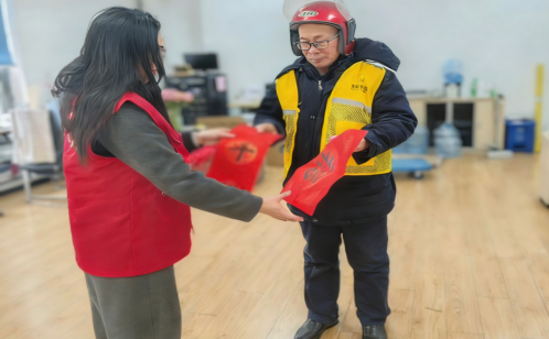 便民服務傳溫情,歡聲笑語聚鄰里。便民服務專區不僅提供免費磨刀服務,切實解決居民日常生活小事,還增設了禁燃禁放宣傳角。海棠先鋒、網格員現場講解安全知識與環保理念,引導居民共同守護晴朗藍天。海棠先鋒還為新就業群體送上春聯、福字及禁燃禁放宣傳物品,并致以誠摯問候,讓他們在忙碌奔波之余,真切感受到社區大家庭的溫暖與關懷,共同踐行文明過節的新風尚。居民們現場還參與了投壺傳統趣味游戲,相互比拼技藝、放松身心,在歡聲笑語中進一步拉近鄰里距離,凝聚社區合力。