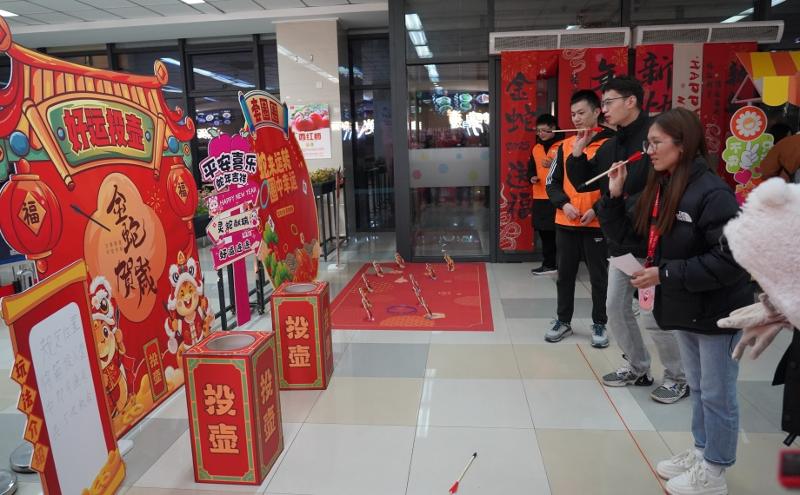 活動(dòng)現(xiàn)場(chǎng),團(tuán)工委還為留蘇青年們準(zhǔn)備了豐富多彩的暖心市集,現(xiàn)場(chǎng)歡聲笑語不斷。糖葫蘆、海棠糕、赤豆圓子……各類蘇式美食香氣四溢,投壺、套圈傳統(tǒng)游戲則吸引了眾多青年參與。在文化體驗(yàn)區(qū),青年們?cè)诜沁z老師的指導(dǎo)下,親手拓印新春“福”字,學(xué)習(xí)傳統(tǒng)技藝,感受江南文化的獨(dú)特魅力;新年祈福墻前,大家紛紛拿起筆,在許愿牌上寫下對(duì)新一年的美好期許;而新春全家福區(qū)域則為青年們定格下了這難得的團(tuán)聚時(shí)刻,留下珍貴的回憶。員工舒女士表示:“這次活動(dòng)很熱鬧、很暖心,雖然沒有回家,但在蘇州也能過一個(gè)有溫度、有年味的春節(jié)。”