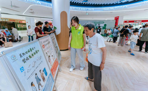 趣味游戲區(qū)的創(chuàng)意設(shè)計(jì)亮點(diǎn)頻出。居民們手持打卡地圖,穿梭于“垃分視力表”“分類大轉(zhuǎn)盤”“綠色補(bǔ)給站”等八大互動點(diǎn)位,通過趣味測試、知識問答、投擲游戲等方式邊玩邊學(xué)。“‘瓶’什么都給我”專區(qū)人氣爆棚,居民王阿姨用積攢的飲料瓶兌換了綠蘿,笑得合不攏嘴。“城投再生”“綠色補(bǔ)給站”和“舊物煥新”專區(qū)也深受居民青睞,居民們拎著紙箱、舊衣物排隊(duì)兌換環(huán)保袋、文具等實(shí)用物品,直觀感受到“垃圾是放錯(cuò)位置的資源”。游戲化體驗(yàn)不僅提升了垃圾分類知識的趣味性和互動性,更讓居民在輕松愉悅的氛圍中掌握分類技巧、提升環(huán)保意識。針對還不太熟悉如何正確分類的居民,志愿者則一對一講解垃圾分類知識,實(shí)現(xiàn)寓教于樂“零距離”。此外,志愿者們還同步宣傳倡導(dǎo)“光盤行動”“限塑”“減少使用一次性用品”等源頭減量、簡約適度的生活方式。