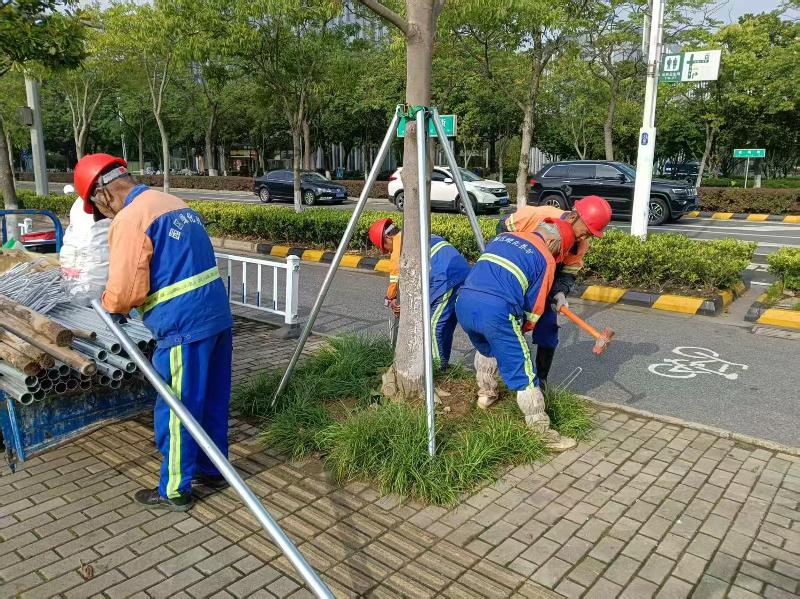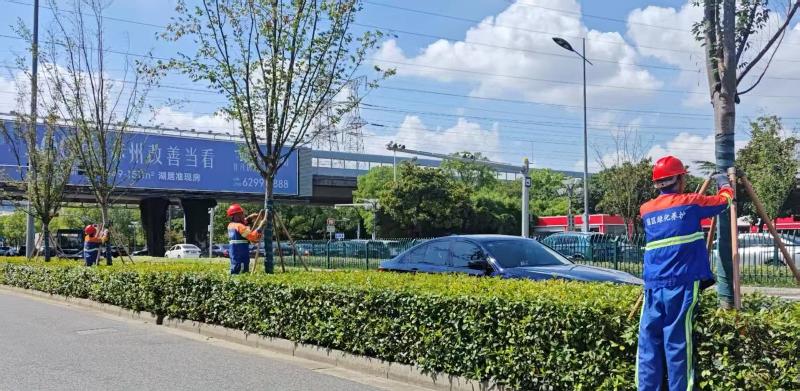 全面排查并完成高大易倒伏喬木的加固支撐和安全處置。對2500余棵樹冠較大喬木進(jìn)行梳枝修剪,整理并加固帶有支撐的喬木6500余棵,預(yù)備500副鋼管支撐,組建倒伏苗木處置隊伍。加固或拆除高空構(gòu)筑物、工地圍擋等設(shè)施,消除傾倒隱患,排查公共停車場等地下空間的安全運行情況。開展全區(qū)路燈、景觀燈、廣告牌及交通設(shè)施巡查加固,嚴(yán)防高空墜物風(fēng)險。在公園等臨水區(qū)域設(shè)置警戒線,同步加強保安巡查頻次。