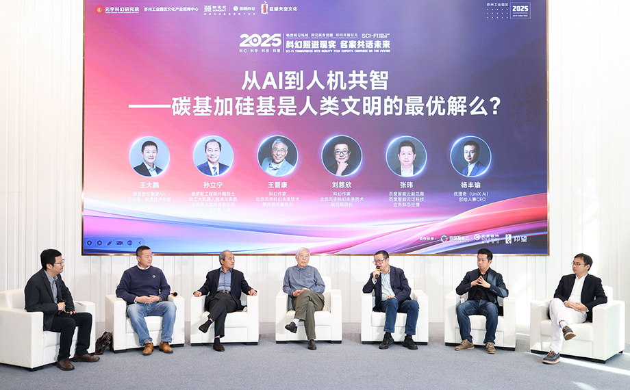 本次活動由蘇州寰宇未來文化科技有限公司、新建元控股集團(tuán)旗下圓融發(fā)展公司主辦。與會人員圍繞“從AI到人機(jī)共智——碳基加硅基是人類文明的最優(yōu)解么?”和“具身智能覺醒——會是我們的工具還是朋友?”兩大主題,就科技發(fā)展對人類社會的影響,以及科幻與現(xiàn)實(shí)的深度融合路徑進(jìn)行了深入交流探討。