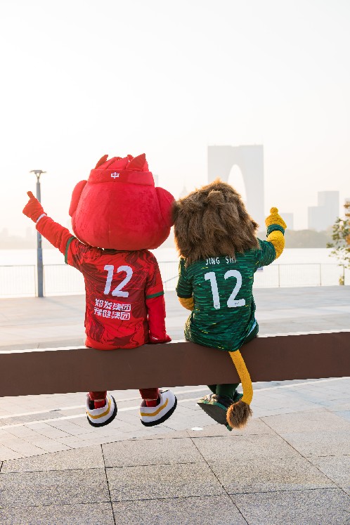 腳踏足球,北京國安的吉祥物“京獅”朝氣蓬勃,身上的12號球衣,將球隊與球迷緊緊相連。河南俱樂部的吉祥物“巴布”則以大象的形象和紅色主色調,彰顯無畏、自信、堅韌、拼搏的精神內核。它們萌趣活力的形象在金雞湖畔留下這個秋末初冬的一份獨特記憶。