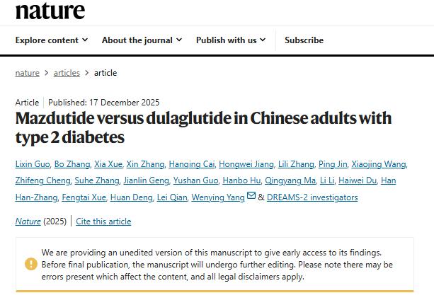 12月18日,由蘇州工業園區領先創新藥企信達生物與中國內分泌和代謝領域的權威專家、頂尖科研機構共同合作的瑪仕度肽兩項Ⅲ期臨床研究成果,登上國際科學頂級學術期刊《自然》(Nature)。該成果不僅是《自然》創刊以來首次在代謝內分泌領域背靠背發表兩項Ⅲ期臨床研究,更使瑪仕度肽成為全球唯一同時登頂《自然》與《新英格蘭醫學雜志》(NEJM)的GLP-1類藥物,彰顯中國在代謝疾病治療領域的原始創新能力與臨床研究實力。